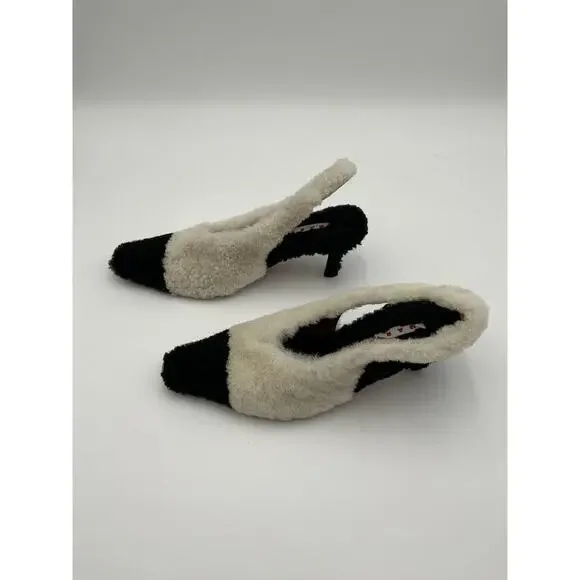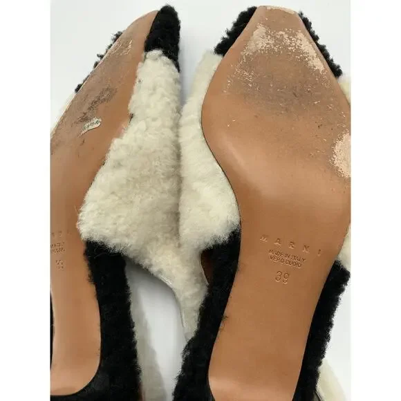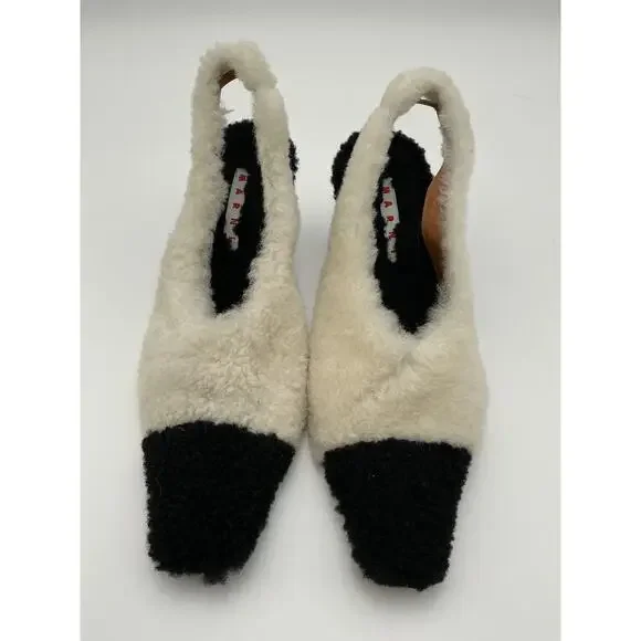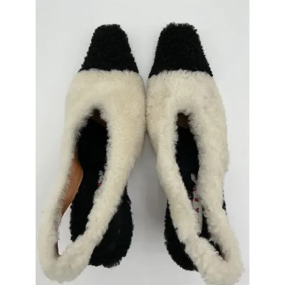 Marni ´Shearling´ White Leather Slingback Pumps Size 9