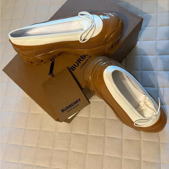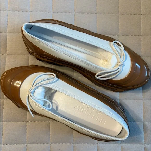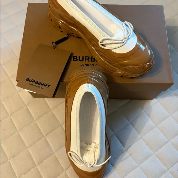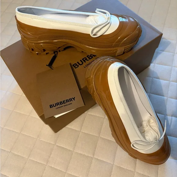 Burberry Women’s Linford Amber -White/Tan Flats with Chunky Rubber Sole