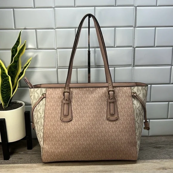 Michael Kors Pink/Cream Voyager Tote! GUC!!