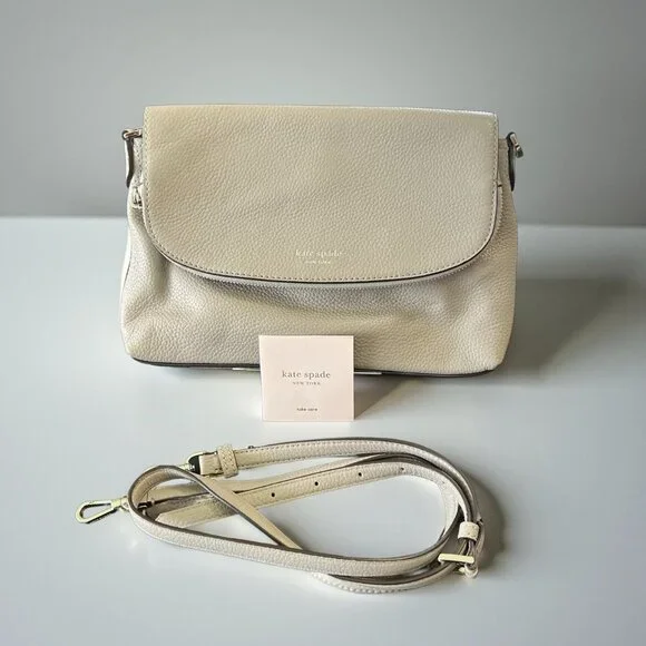 Kate Spade | Pale Grey | Large | Cross Body Polly Bag *NWOT*NWOT, or Preowned EUC. This was a personal item of mine, that I don´t believe I ever got around to using. It is in excellent condition! Pale grey pebbled leather with lots of roomy pockets and the quality you´d expect from Kate Spade. It has a nice long, adjustable and removable crossbody strap, with silver tone hardware. Please see the close-up photo of the branded logo for the true color. It is grey, not taupe. Note: I´ve misplaced the dustbag, but will wrap it appropriately for shipping. =) Women´s Size: O/SMeasurements: Please see photos provided. Thanks!Materials: Genuine leather#katespade #corssbody #polly #grey #pebblestone #genuineleather #bags #shoulderbag