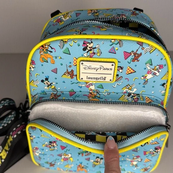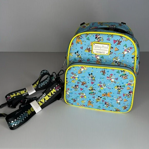 This BNWT RunDisney Loungefly backpack is adorable!! This has never been used and all of the original packaging is still inside and the straps are attached. This features Mickey and his friends with a 90’s theme.