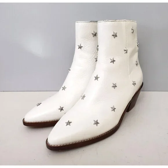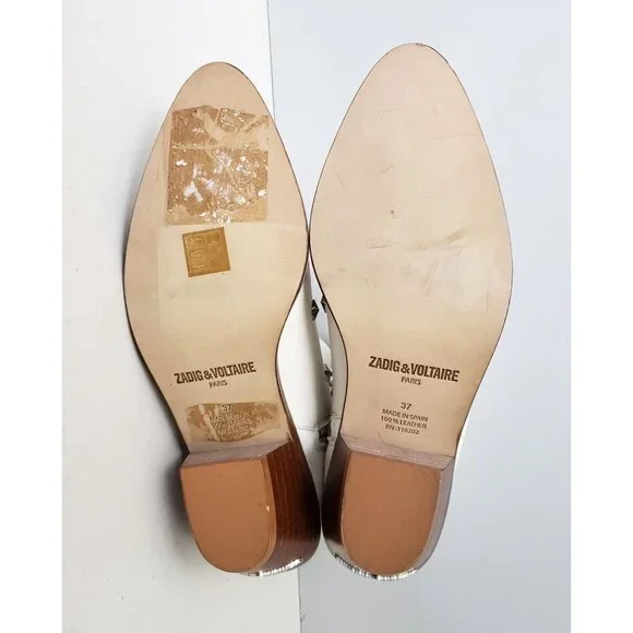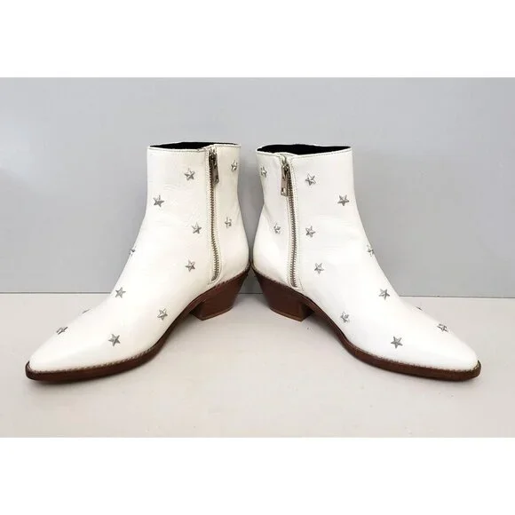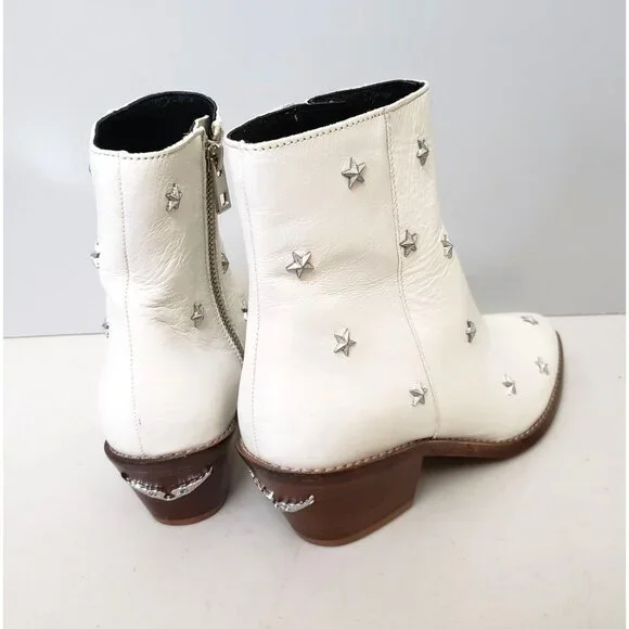 Zadig & Voltaire Tyler Star Studded Ankle Boots White Leather Size 37