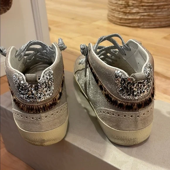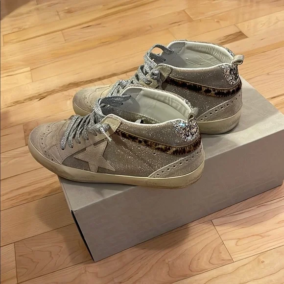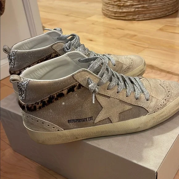 Step out in style with these Authentic Golden Goose . Featuring a sleek tan design with eye-catching silver accents.Purchased at Neiman Marcus. $715Pink Bottoms Mid Star 38With Box and DustbagEUC worn a handful of times!