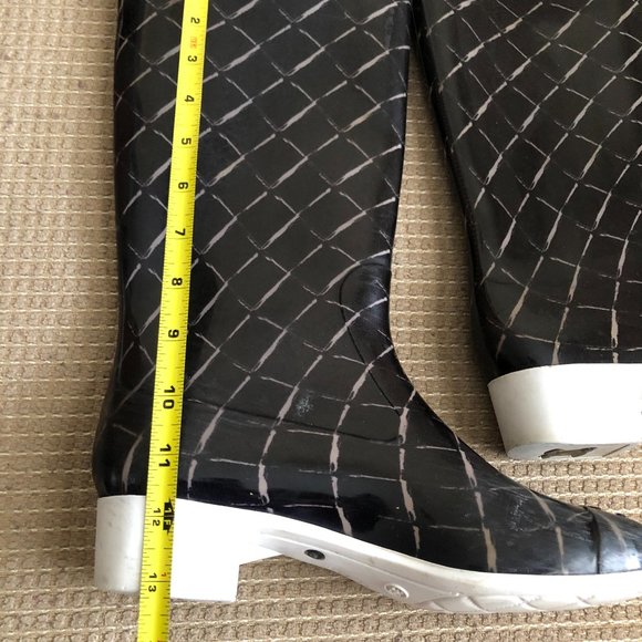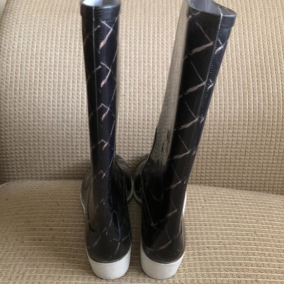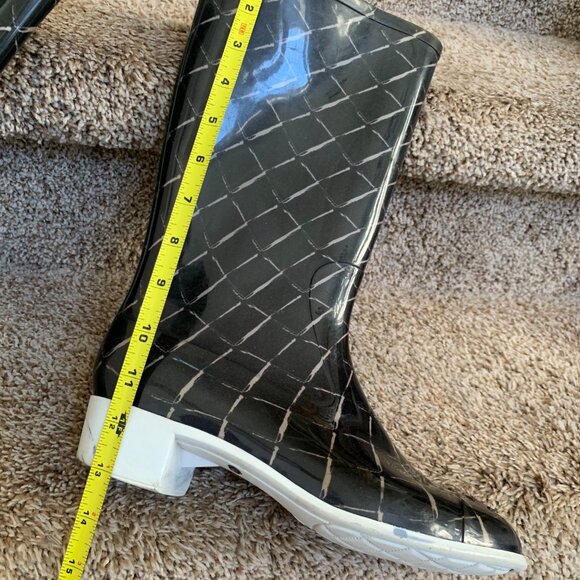 Women´s Black/ WhiteMid-Calf Quilt Printed Rubber Rain Boots. Size EU 39. US 8.5In very good condition with signs of use. Shows some scuffs and scratches.From the 2008...