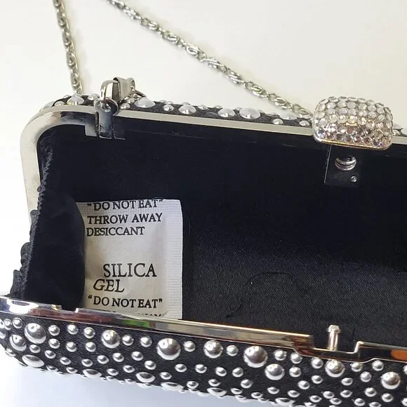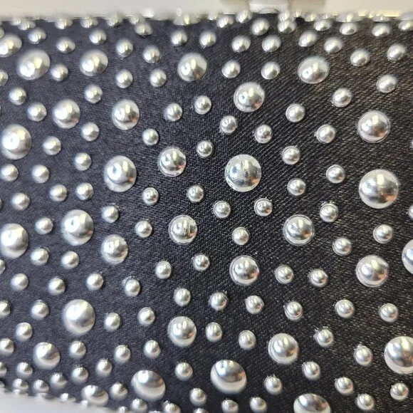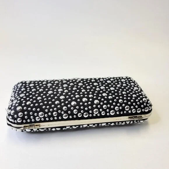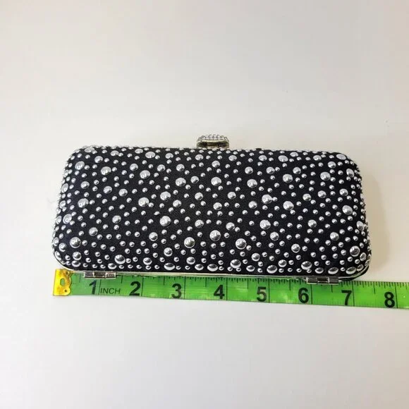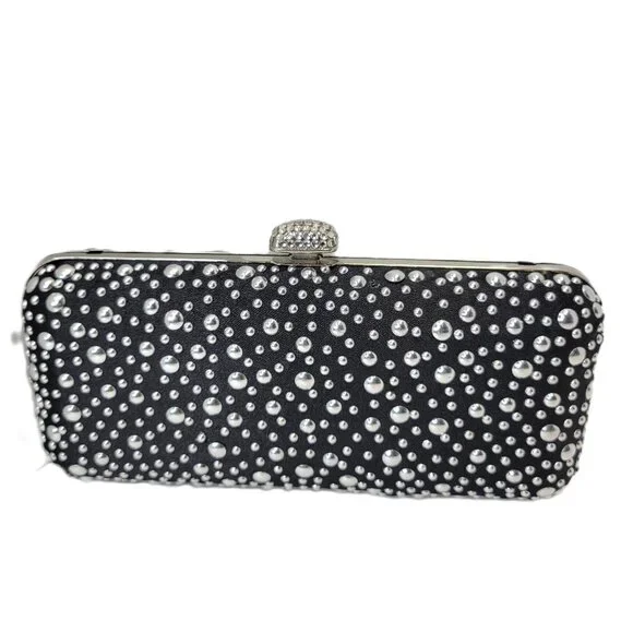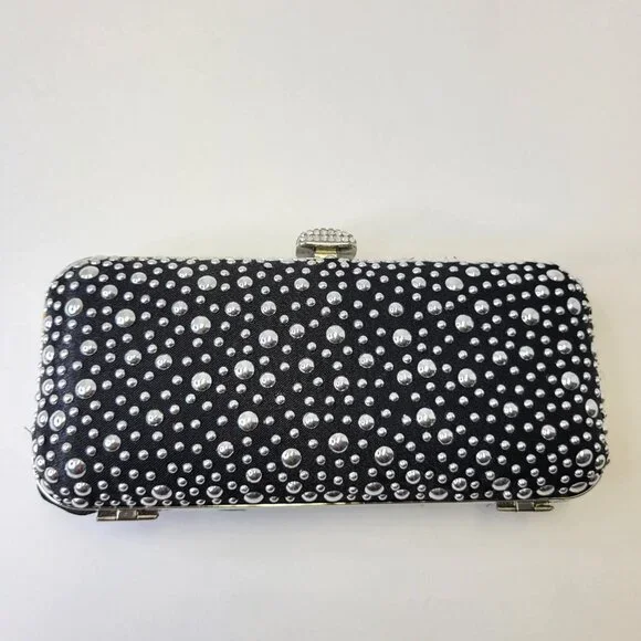 Black Evening Purse with Shiny metallic studsRectangular shaped, Easy to Grip with different sized metallic studs all over.Really cute, small and easy to hold onto Long detachable...