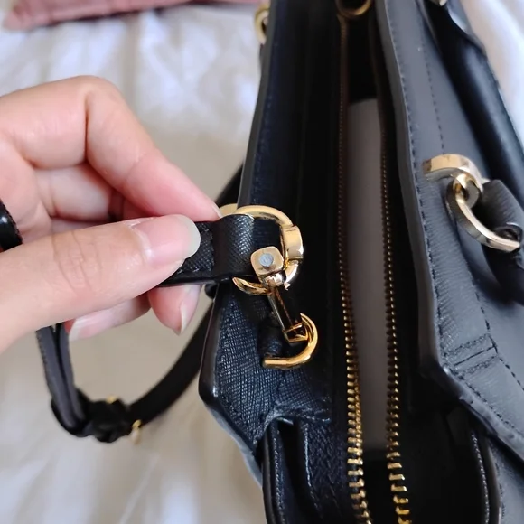 removable shoulder strap*the crossbody strap hardware broke on one side, I look it through the hook and works fine. May be replaced. or used as handbagno dust baggreat condition,...