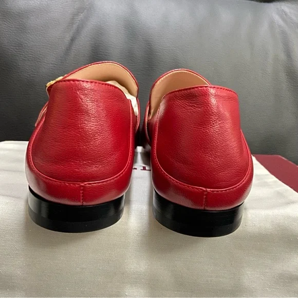 Brand new with tags and box.MSRP $950Limited edition BALLY Janelle Leather Loafers Flats with Swarovski Crystal Embellished BuckleColor: Lipstick RedMaterial: Lamb leather...