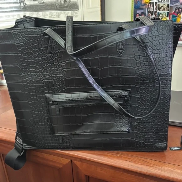 The BEIS Black Crocodile-Embossed Tote Bag is a sophisticated accessory that combines elegance with practicality. Crafted from high-quality materials, this tote features a...