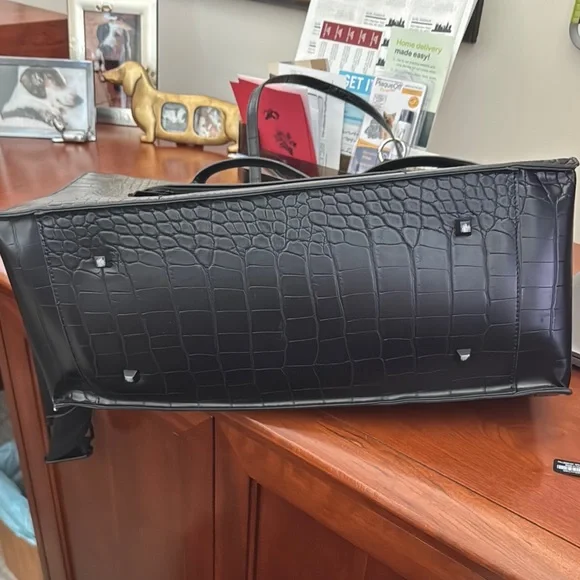 BEIS Black Crocodile-Embossed Tote Bag