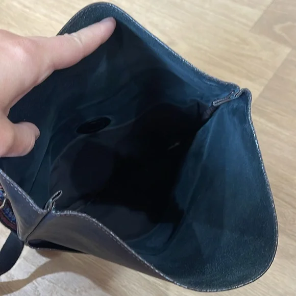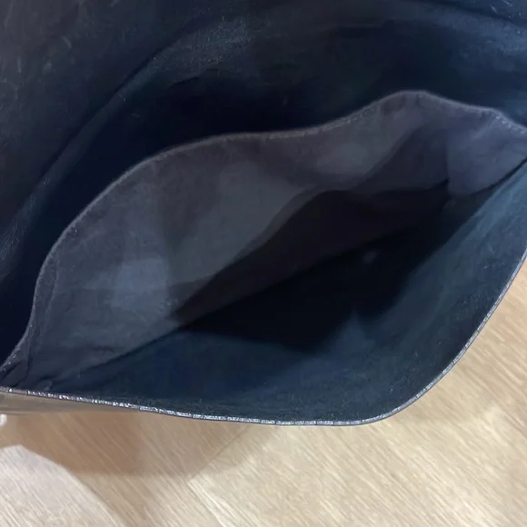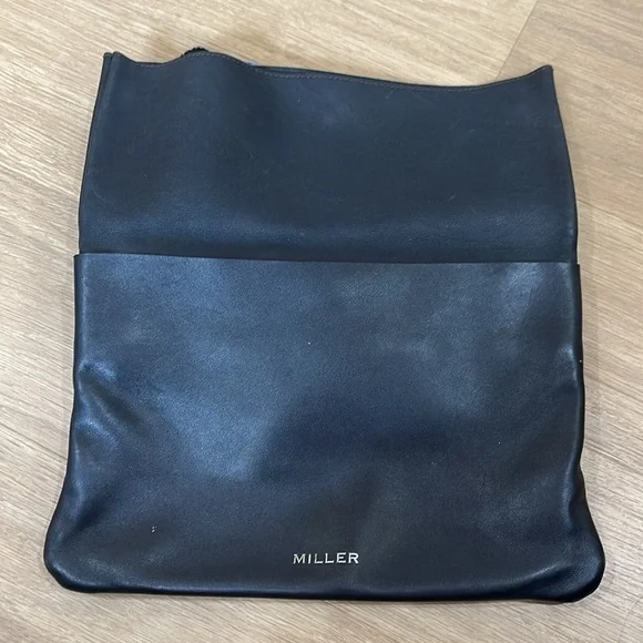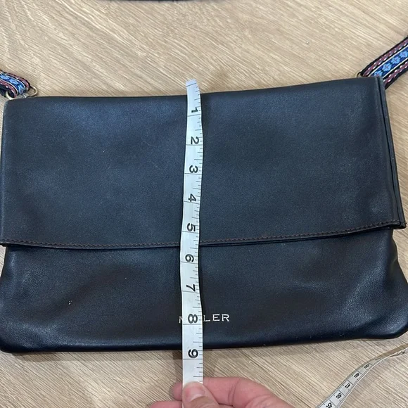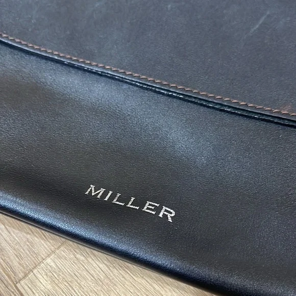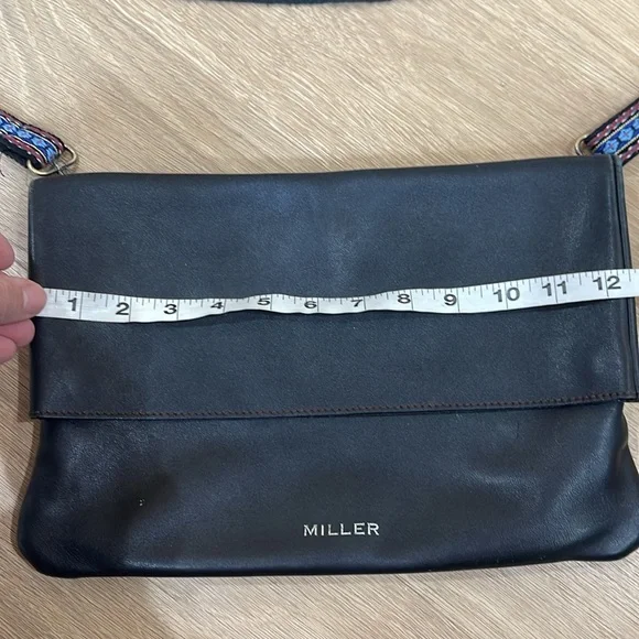 Personalized “Miller” Black Leather Foldover Crossbody Handbag. Multiple pockets. Wear as pictured. Wear mainly to removable crossbody strap. Overall in GUC.