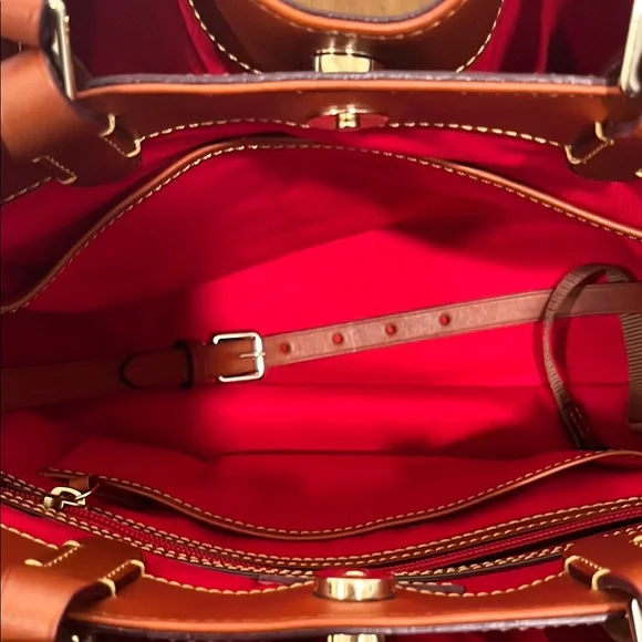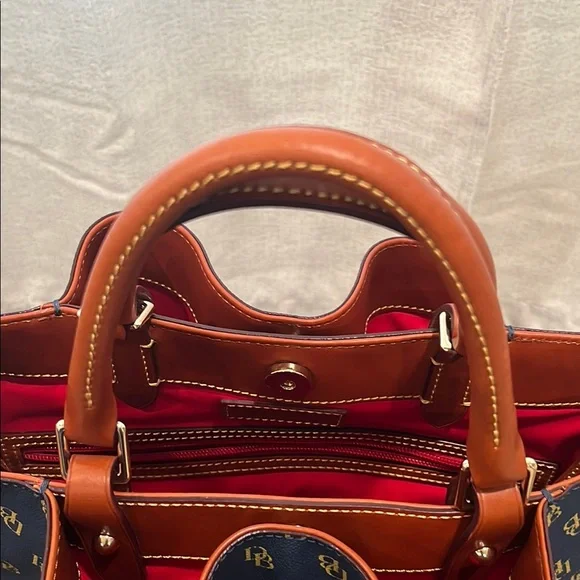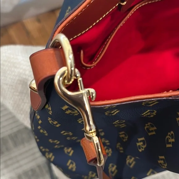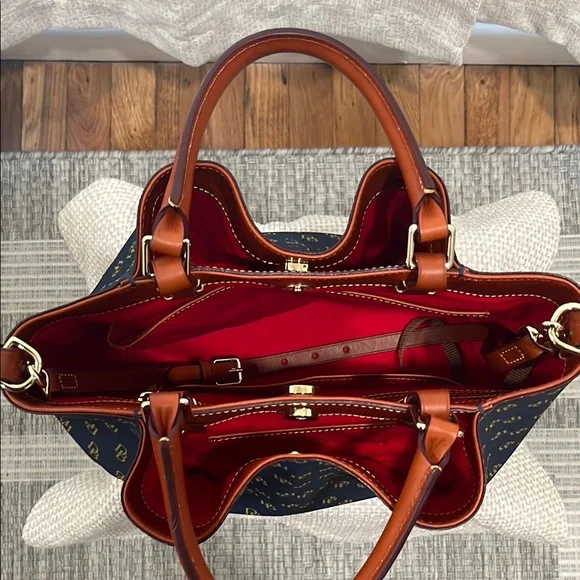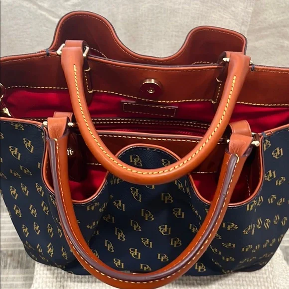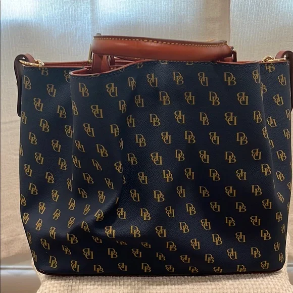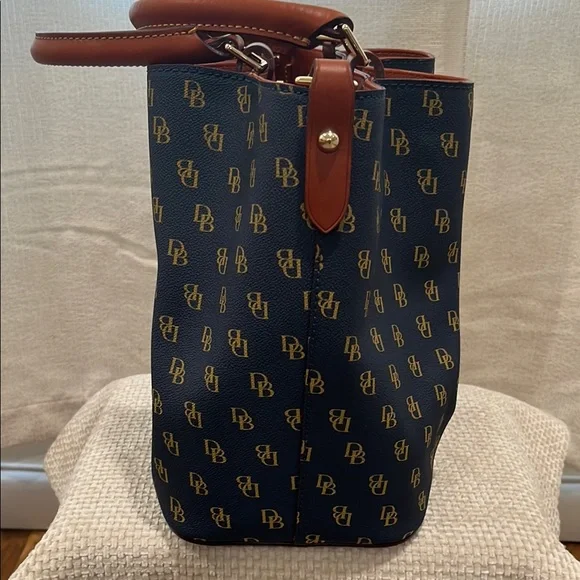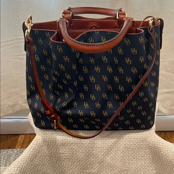 Stylish and versatile, this Dooney & Bourke Brenna Coated Canvas tote bag in color Navy features a classic design with leather trim. Perfect for any occasion, it combines elegance with functionality. New, never used, no odors, clean. Adjustable strap included, can be worn crossbody and shoulder length.