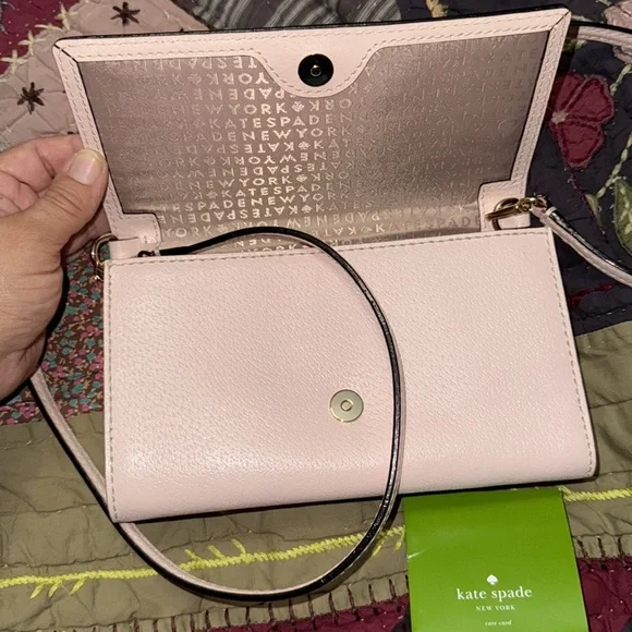 New with tags Kate spade detachable crossbody strap gold hardware pink beautiful purse phone not included :)