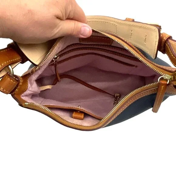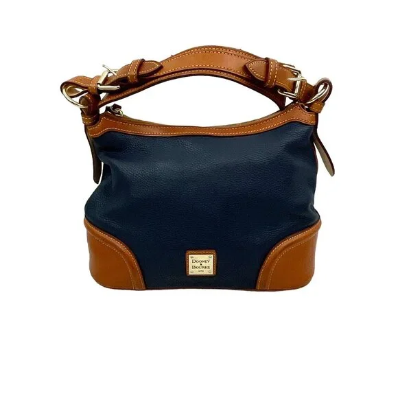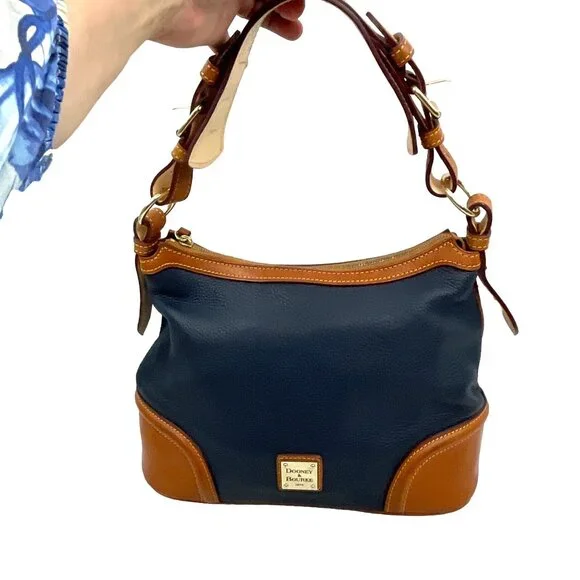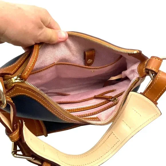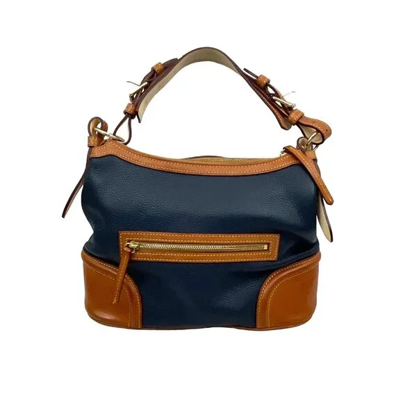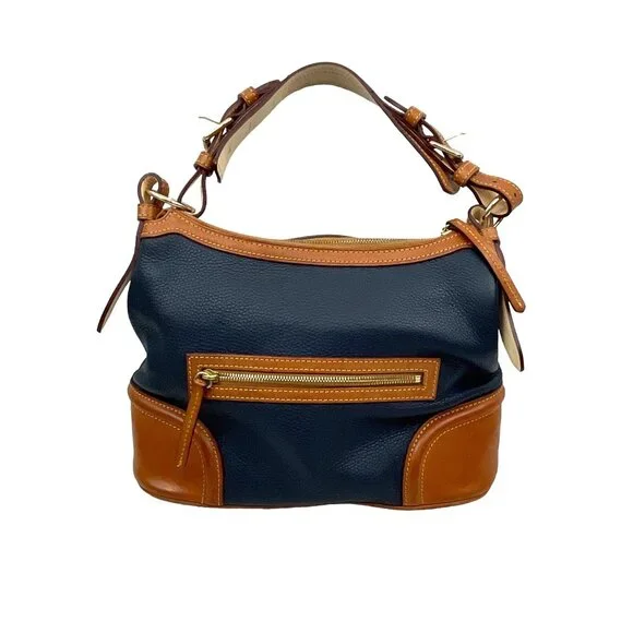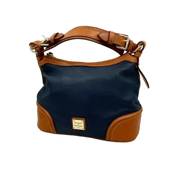 Dooney & Bourke Wexford Leather Hobo Navy & Brown Leather Shoulder Bag With Gold