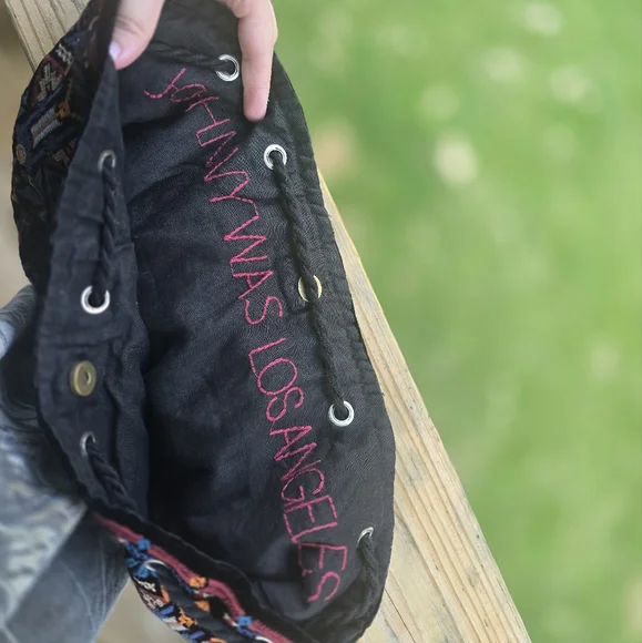 Johnny Was Cleo Velvet Drawstring Backpack In Blackexcellent condition only carried a few times!incredibly soft velvet with beautiful embroidery and stitching throughout very...