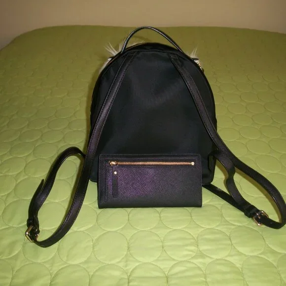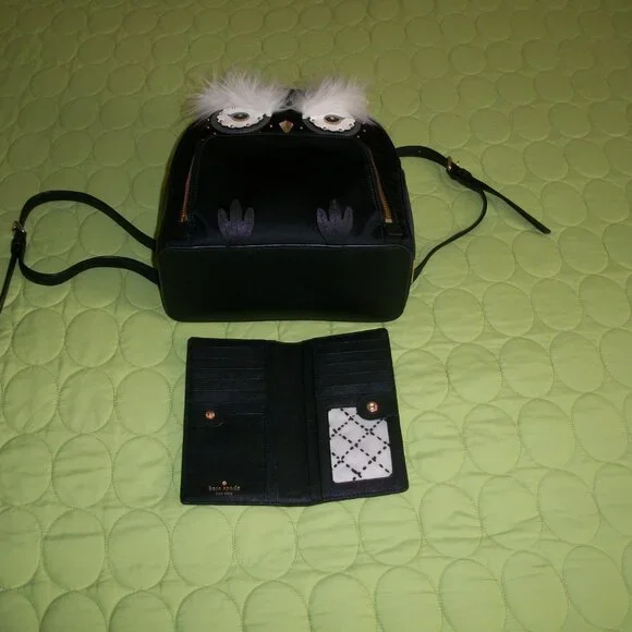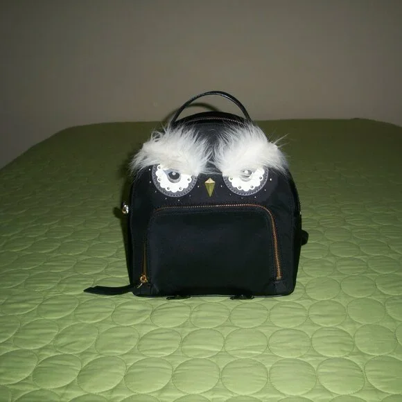 Kate Spade Star Bright black Owl Tomi Nylon Backpack With Wallet