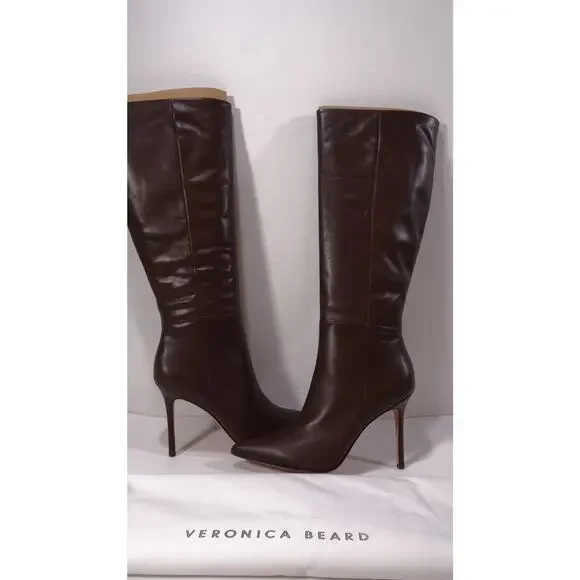 Veronica Beard Lisa Leather High-Heel Boots Sz 9.5NIB 698 EspressoVeronica Beard´s Lisa boots are crafted of shiny leather with a pointed toe and a stiletto heel.Leather upperPointed toeSide zipLeather soleImportedSIZEStiletto heel, 3.75" (95mm)Platform height, 3.75"Shaft height, 15.5"ABOUT THE BRANDVeronica Beard was founded by sisters-in-law Veronica Miele Beard and Veronica Swanson Beard in 2010. With a strong belief in enduring personal style, the co-designers focus on elevated everyday pieces, like their signature structured blazers and easy-chic dresses.Learn more about ourshippingandreturnspolVeronica Beard is an elevated American women´s wear brand that strikes a balance between classic chic and laidback cool. Veronica Miele Beard and Veronica Swanson Beard are sisters-in-law who launched their brand together in 2010 with a modern perspective on iconic staples. The brand developed the Dickey Jacket as its first must have piece under the concept of chic uniform dressing. Impeccable tailoring meets superb quality in each of Veronica Beard´s cool, effortless pieces. Color: Naturalfounded by sisters-in-law Veronica Miele Beard and Veronica Swanson Beard in 2010. With a strong belief in enduring personal style, the co-designers focus on elevated everyday pieces, like their signature structured blazers and easy-chic dresses.