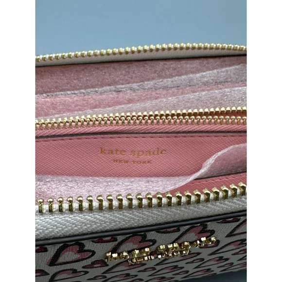 Kate Spade Morgan Fancy Hearts Zip-around Continental Wallet KA063 NWTFeatures:• Continental wallet with full zip-around closure• Printed PVC with heart design• Interior: center coin zip pocket, 12 card slots, 4 slip pockets• Exterior: rear slip pocket• Gold-tone hardware and logo• Style No. KA063 Fancy Hearts MSRP $198Approx. Measurements:Length 7.75 in / 20 cmHeight 4 in / 10 cmWidth 1 in / 3 cmCondition: New With Tags - Purchased from major department store. Factory padding still inside wallet. Colors may vary due to photography lighting, etc. as well viewer´s screen resolution. Please advise if you have any questions before purchase.BUNDLE ITEMS FROM MY CLOSET TO SAVE ON SHIPPING!