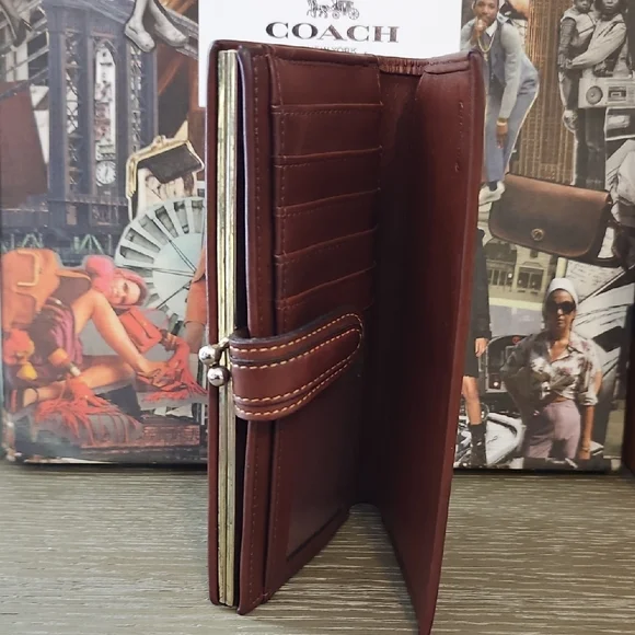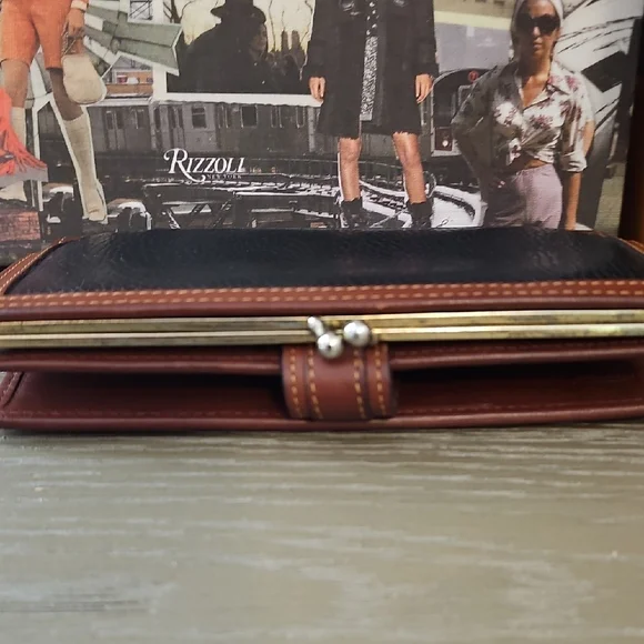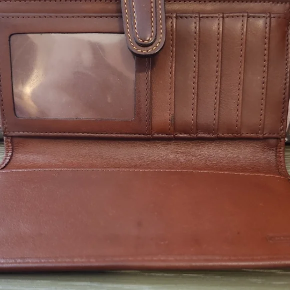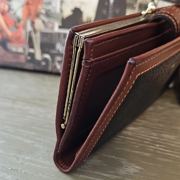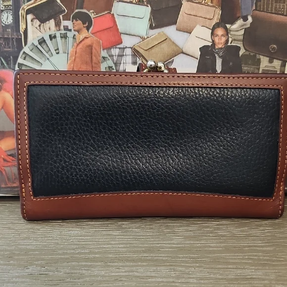 Elegant Coach clutch in rich black and brown leather. Features a classic design with a secure strap closure. This wallet is an excellent used vintage condition. Does have minor signs of use throughout? It is not a brand new wallet. It is not a perfect wallet, but it is perfectly vintage. It still has very much life and left and love to give absolutely gorgeous.This is for the series coach collector!