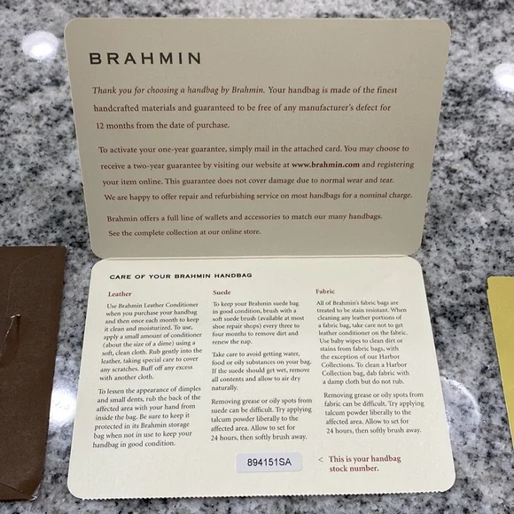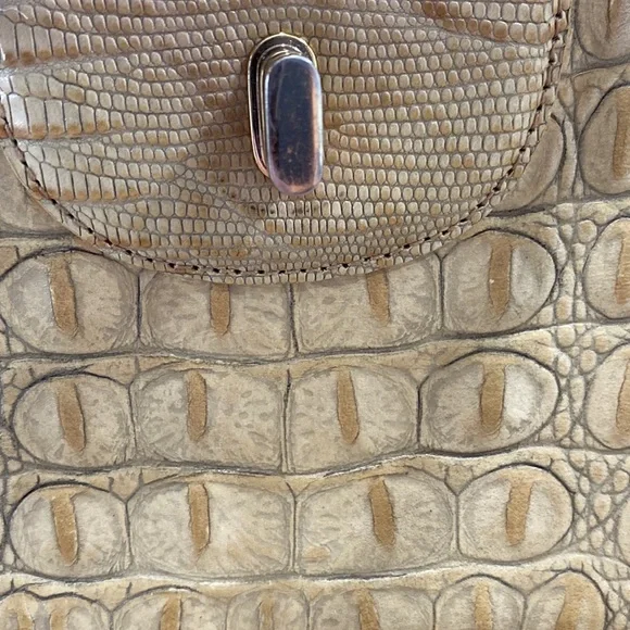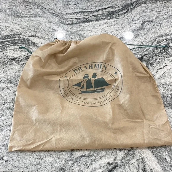Let me start out by saying that Im not a handbag aficionado so please study the pictures carefully to judge condition as I want you to be thrilled with your purchase!!Included is the dust bag, price tag and Brahmin care card.I cleaned the exterior as well as the interior and applied leather conditioner to the exterior of the bag.The bag is clean but there are a couple of condition factors.The Brahmin nameplate on the bag interior shows some wear.On the exterior, on the plate behind the turn lock there is wear as well as on the lock.The strap is fine except for an area about 1/2” long along the side of the strap.There is also some wear on the back apparently from rubbing wear against the body.Fortunately because of the color of the bag, it blends well.On the bottom each of the four corners is a bit darker.There is also some wear at the top of the handles where it was carried.Overall it presents well and is clean.Approximately 4.5” deep across the bottom, 8” high, 13” long, strap drop about 7”.Each long side has an outside pocket and there are 3 interior sections, each having pockets.Magnetic closures.Suede interior fabric, bottom feet.Please ask questions which I’ll answer to the best of my ability.Thank you for your consideration! Offers on this are welcomed.