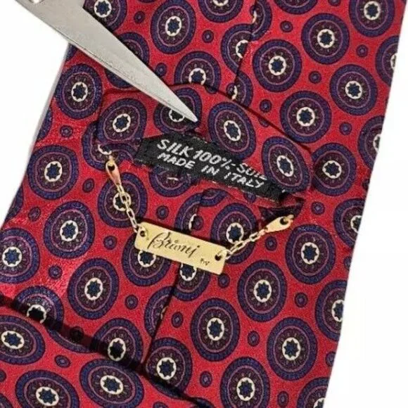 Brand : BRIONICountry Of Manufacture : ItalyType & Style : Men´s TieColor & Pattern : Red MedallionMaterial : SilkSize : RegularMeasurements : L 58" W 4" Condition : ExcellentWelcome to S.I.R. LUXURY StoreAll our items are geniune and authentic.The color may vary slightly due to computer or phone screens.We will do our best to ship your item fast and carefully.If for any reason you are not satisfied with the item received, please write us before leaving bad feedback and we will resolve it immediately.Just give us a fair chance and we promise we can make you Happy, your satisfaction is our priority.You can also visit our store and take a look at our collection of items for men and women posted daily.Please do it and save us.Thank you.