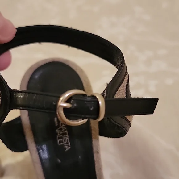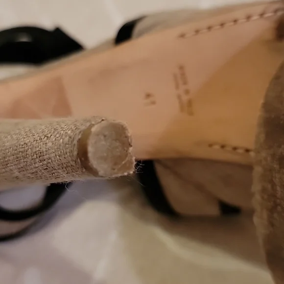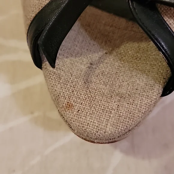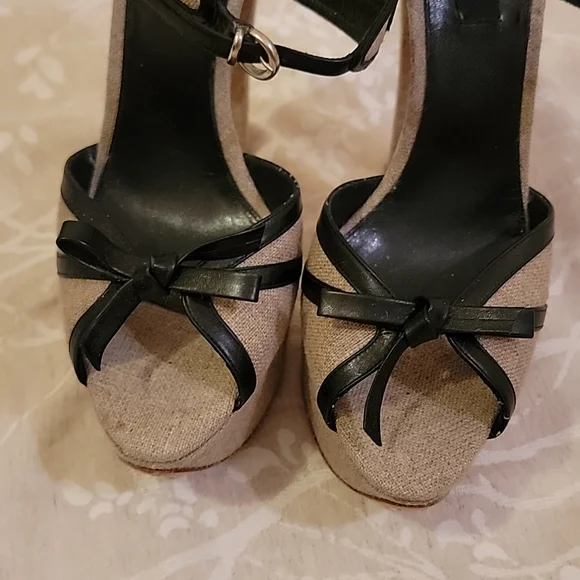 EUC GIAMBATTISTA VALLI Grayish Beige Linen & Black Leather Bows Platform SandalsSize: 41 (US 10)Grayish Beige Linen with Black Leather outlining the open toe bows & adjustable...