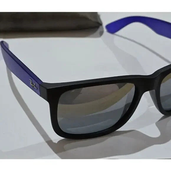 Ray-Ban Sunglasses Black with Blue Arms Justin Style NIB