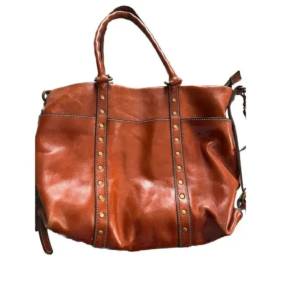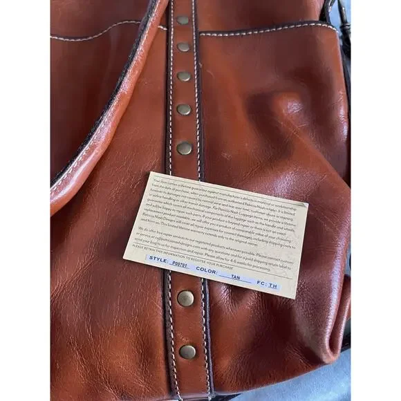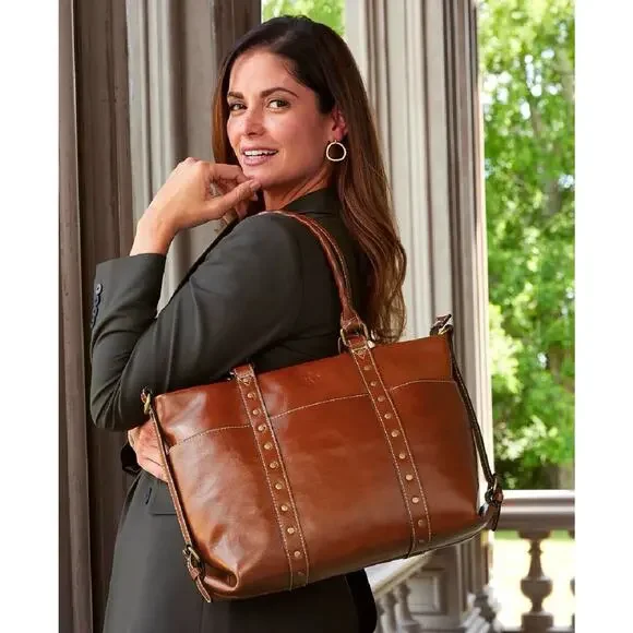 Crafted from premium leather, the Patricia Nash Carducci Tote embodies timeless style with a touch of practicality. This medium-sized tote features a rich tan exterior with...