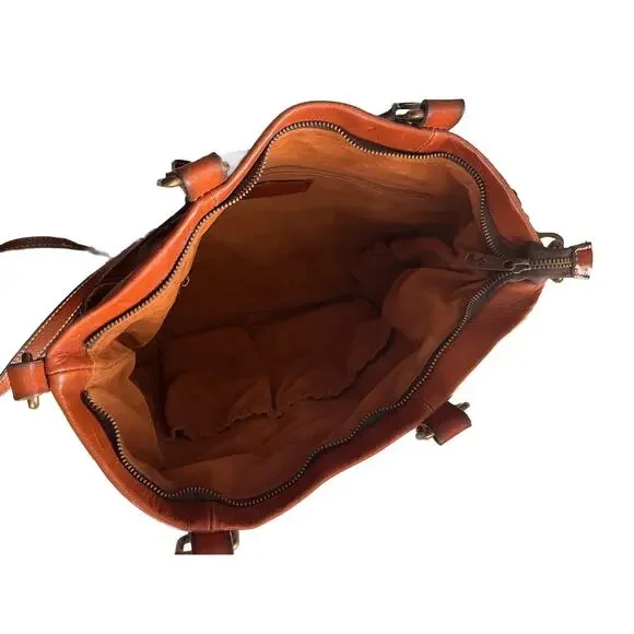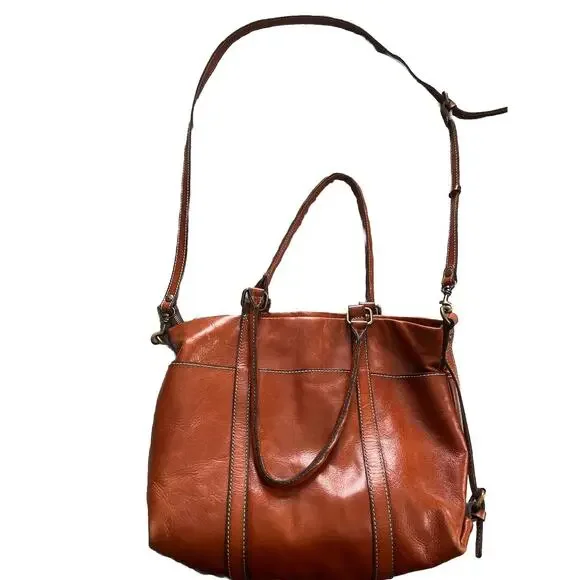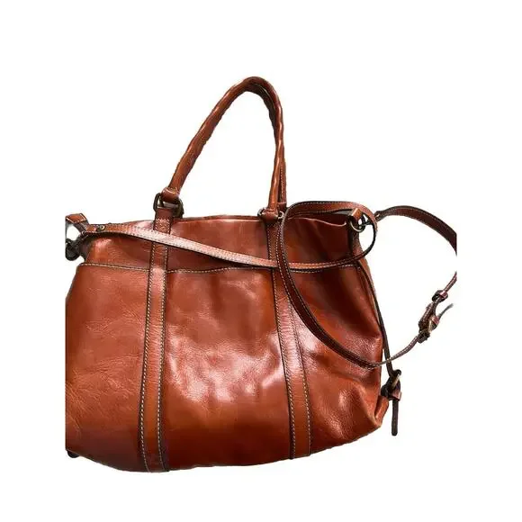 Crafted from premium leather, the Patricia Nash Carducci Tote embodies timeless style with a touch of practicality. This medium-sized tote features a rich tan exterior with complementary brown leather accents and a crossbody strap for versatile carrying options. The zip closure ensures your belongings are secure, while the fabric lining offers a gentle touch for your items.Measuring 15 inches in width, 13 inches in height, and 6.5 inches in depth, the tote is adorned with gold hardware and includes inner pockets to keep your essentials organized. The detachable strap adds to the tote´s adaptability, making it a perfect companion for both daily use and special occasions.