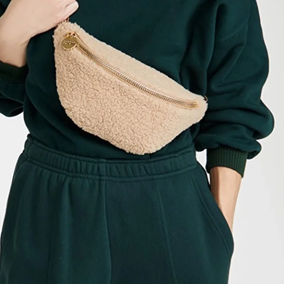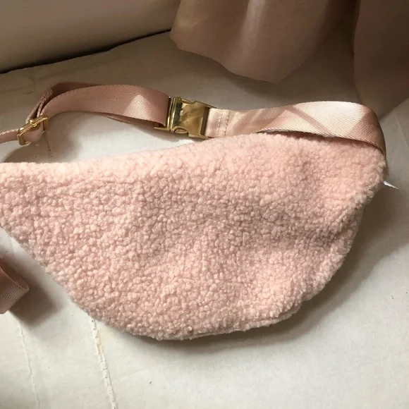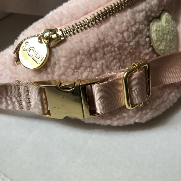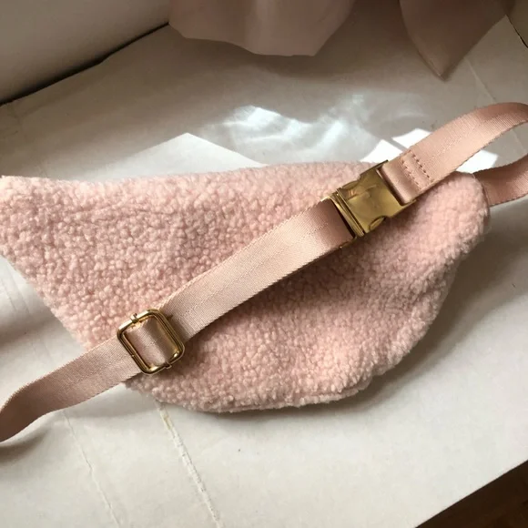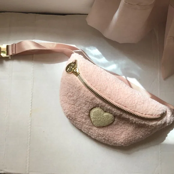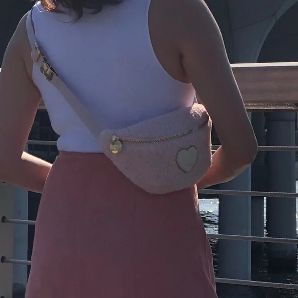 Cozy sherpa brings a cool texture to this Stoney Clover Lane fanny pack for a unique way to go hands-free with your everyday essentials.- Blush Color- Terry Cloth Heart patch with Gold metallic trim- Gold-Tone Hardware- Adjustable Waist Strap- Canvas Lining- Zip Closure at FrontMeasurements:-Height: 5.5in / 14cm-Length: 10.25in / 26cm-Depth: 3.25in / 8cm-Belt length: 31.5-43.25in / 80-110cmCondition: Like NEW Worn 2x, light spotting on gold buckle shown in photo (can prolly be polished). Will send with original plastic sleeveSold out