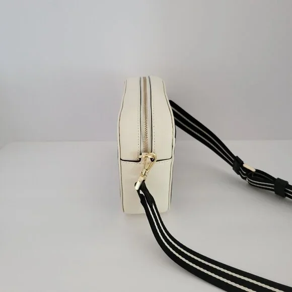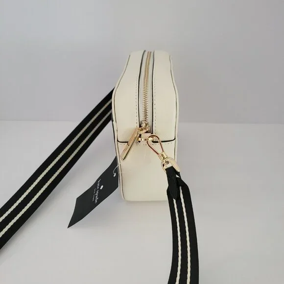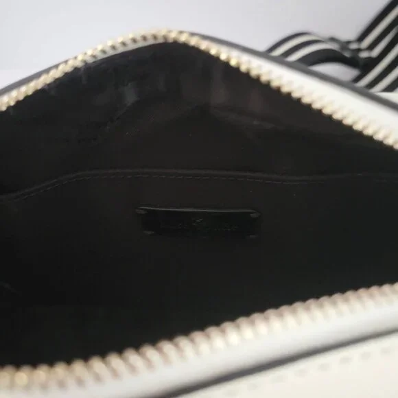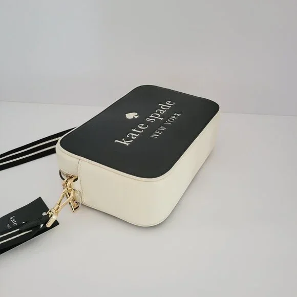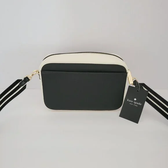 100% AuthenticBrand: Kate SpadeName:Oh Snap Colorblock Saffiano Leather Mini Camera BagColor:Black Multi (001)Model:KH756(W) 7.6"(H) 5"(D) 2.2"Strap Drop: 24" Adjustable/DetachableRetail Price: $289.00 USDBlack/Parchment saffiano leathers with "kate spade NEW YORK" logo embossed on front in ParchmentClosure:Top ZipStrap: Black and Parchment striped Sport Web canvas Stitching: Parchment/BlackSlip Pocket on backHardware: Gold toneLining: Black 2 way Spade Script Logo fabricInterior:Open w/ 1 slip pocketBrand New w/Tag