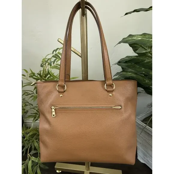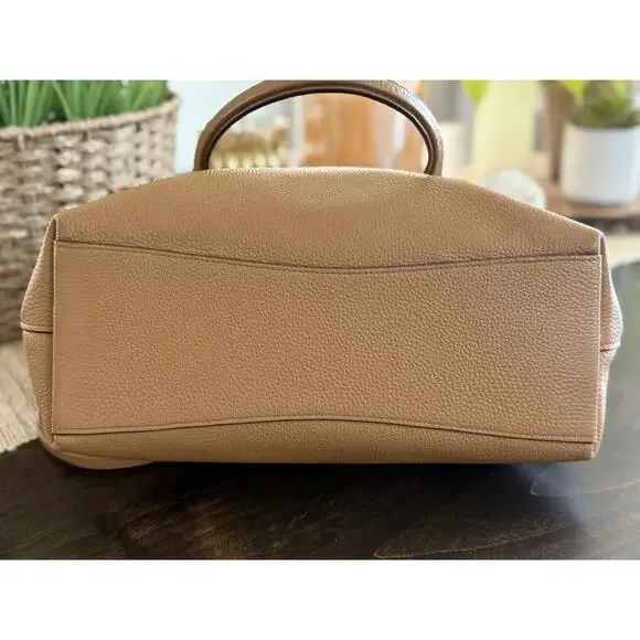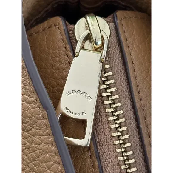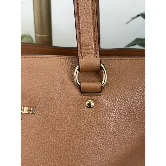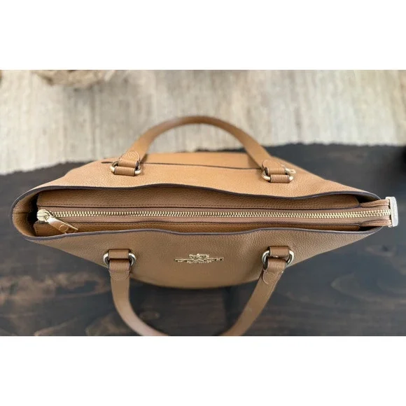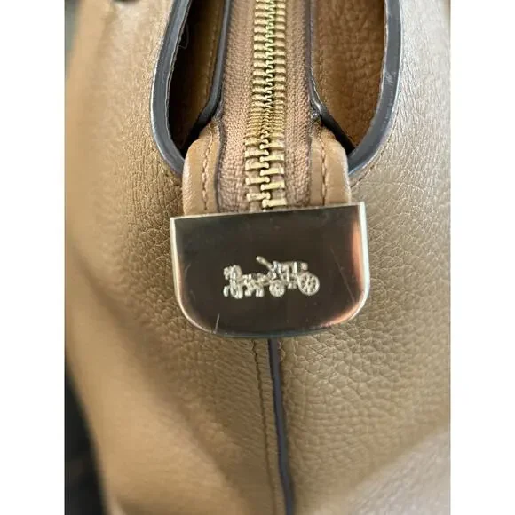 COACH Tan Brown Pebbled Leather Bay Tote Zip Top Double Handle Gold EUC F48637
