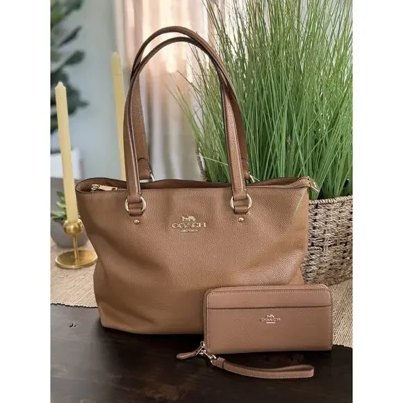 Timesly elegant and stylish, Coach´s collection captures the effortless, nonchalant finesse of the modern woman. Crafter from leather, this chic tote features a spacious interior with a top zip fastening. The sleek, understate silhouette is punctuated with gold-tone hardware. * Color: Camel Brown * Interior: Camel Brown * Gold Tone Hardware * Exterior Material: Leather * Interior Material: Nylon * Made in Vietnam * MSRP: $378NOTE: I have a matching wallet/wristlet also listed separately (see pictures).Thank you for your interest! I take pride in all of my listed items. Message me with any questions. QUICK shipping! Please take a look at my other listings.
