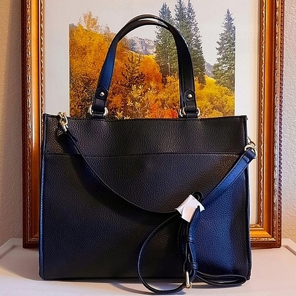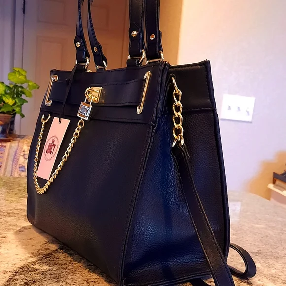 NEW WITH TAGS, IT´S JUICY COUTURE´S GORGEOUS "LOCK N KEY SATCHEL" IN A BEAUTIFUL BLACK COLOR WITH GOLD EMBELLISHED HARDWARE. THIS GORGEOUS BAG ALSO HAS AN ADJUSTABLE STRAP FOR EASY CONVERSION TO A SHOULDER OR CROSSBODY BAG. SO PRETTY!!