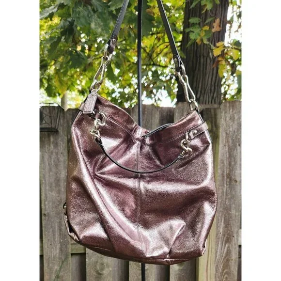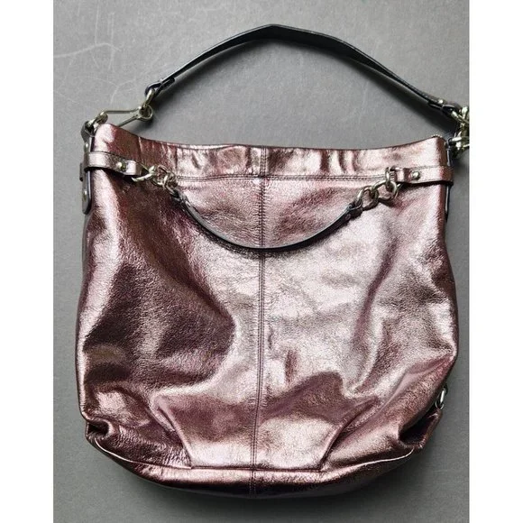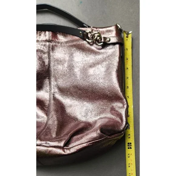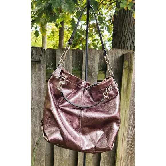 COACH Brooke Handbag Leather Pewter Bronze Metallic Silver Hobo Shoulder Bag