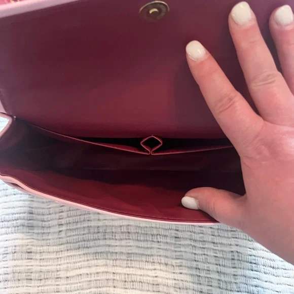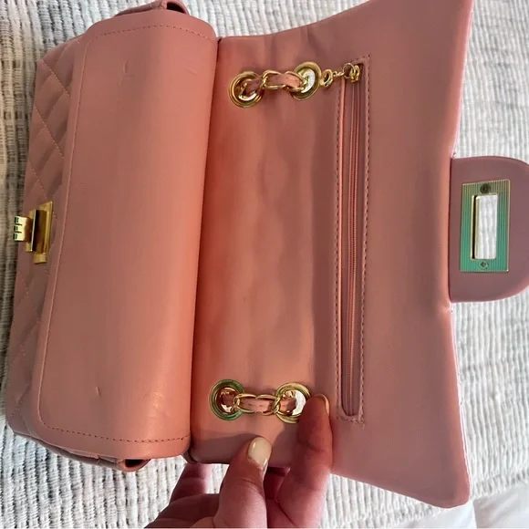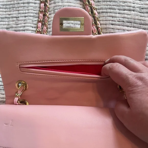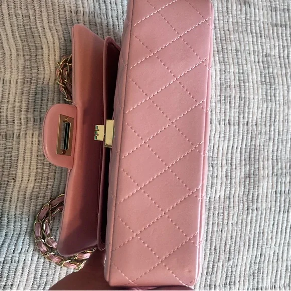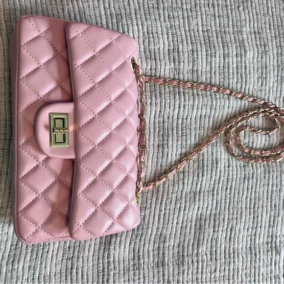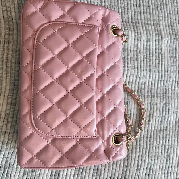 Elegant pink quilted shoulder bag with a stylish chain strap. Perfect for adding a touch of sophistication to any outfit.New, never used gorgeous leather bagUnbrandedRear pocket...