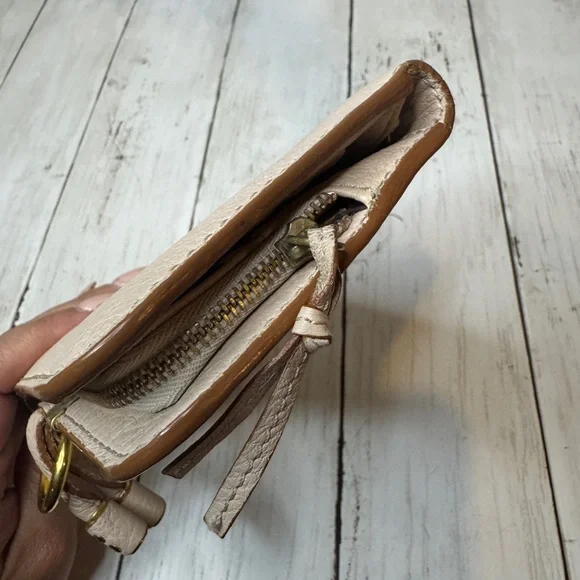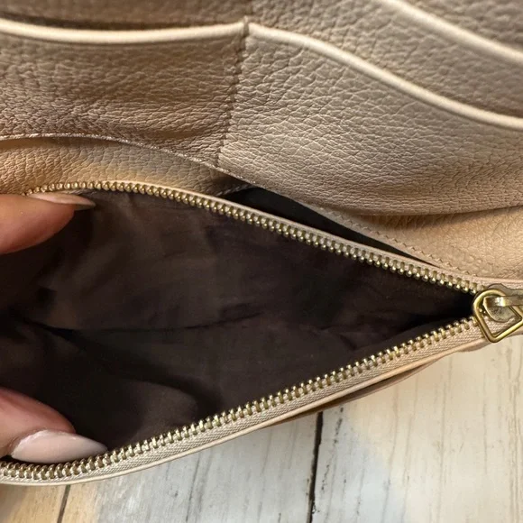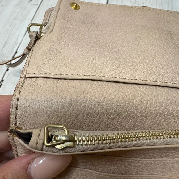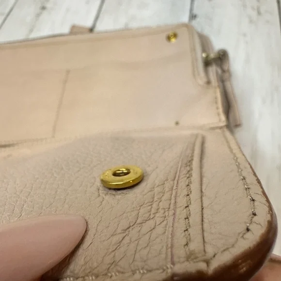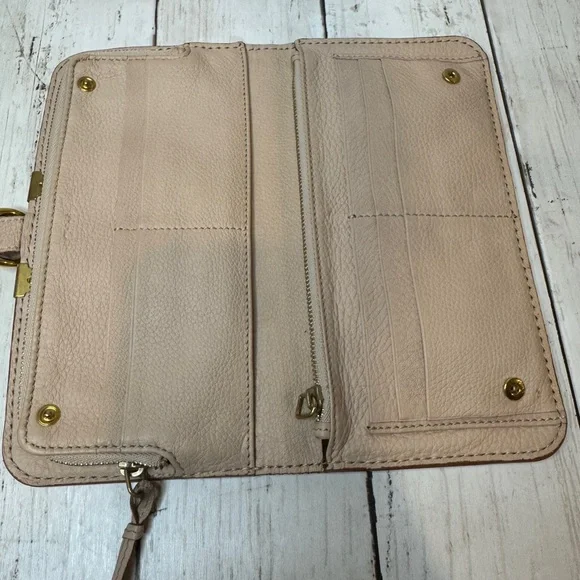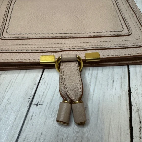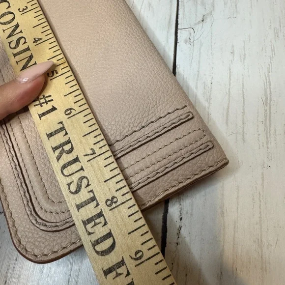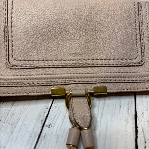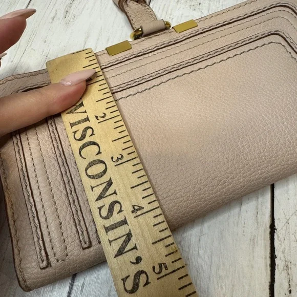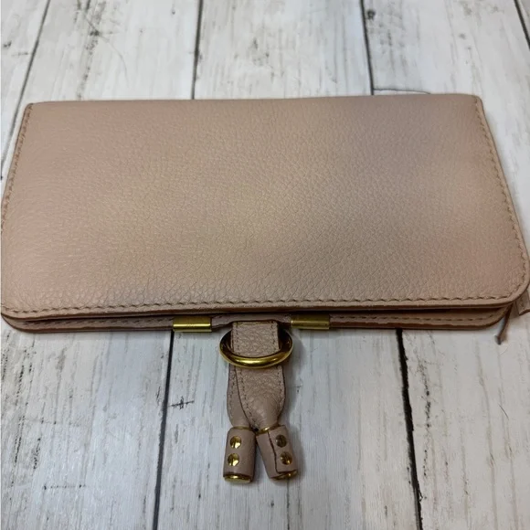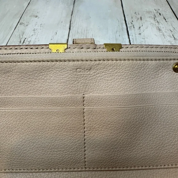Chloe Marcie Leather Long Bifold Wallet Purse Beige Rose Gold