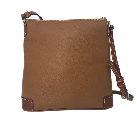 New without tags. Mint Condition. Gift Quality.New without TagsDooney & BourkeRidley Crossbody BagM0875339Pebbled Grain Leatherw/ Smooth Leather TrimColor: BrownMSRP: $328Adjustable crossbody strap, top zip closure, front zip pocket, metal logo plateLined interior, two front-wall slip pockets, back-wall slip pocket, back-wall zip pocket, key keeperMeasures approximately 10-1/4"W x 10-1/2"H x 4"D with a 23" to 26" strap drop; weighs approximately 1 lb, 6 ozBody/trim 100% leather; lining 100% cottonImportedAbout PebbleUpdated classics with rich, textured leather that are ready for your everyday.This longstanding collection is one of Dooney & Bourke´s most popular. The pebble-grained leather has a distinctive texture that holds up beautifully to everyday wear and tear. It´s used to create updated classics in a wide array of colors with contrasting bridle leather trim. The result is a collection of accessories that are loved and carried from one season to the next.Information provided by Dooney & Bourke.sku: Bags 16