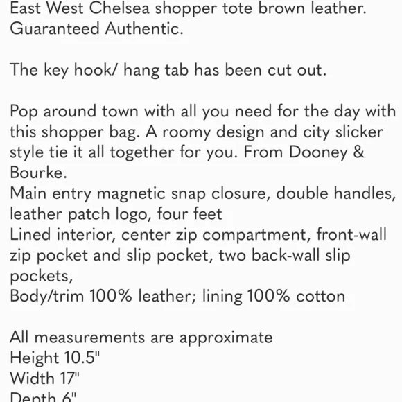 Dooney & Bourke East West Chelsea shopper tote brown leather