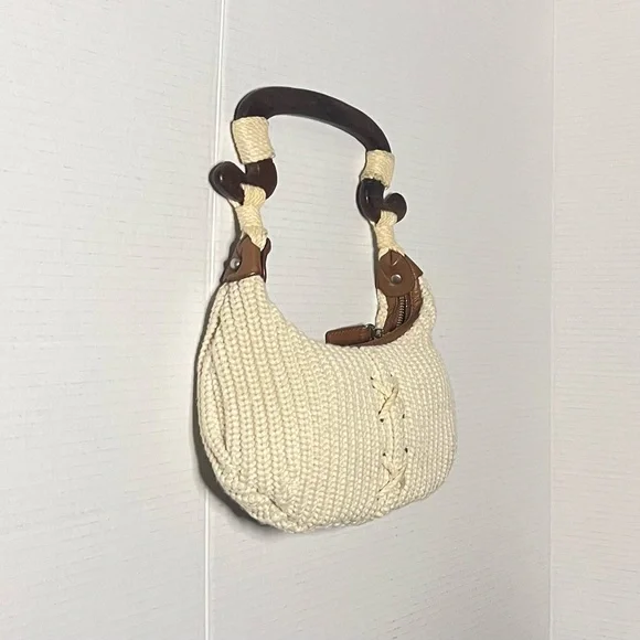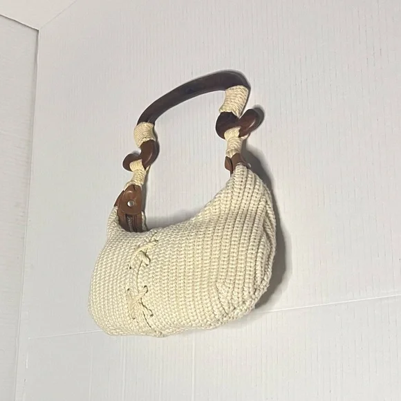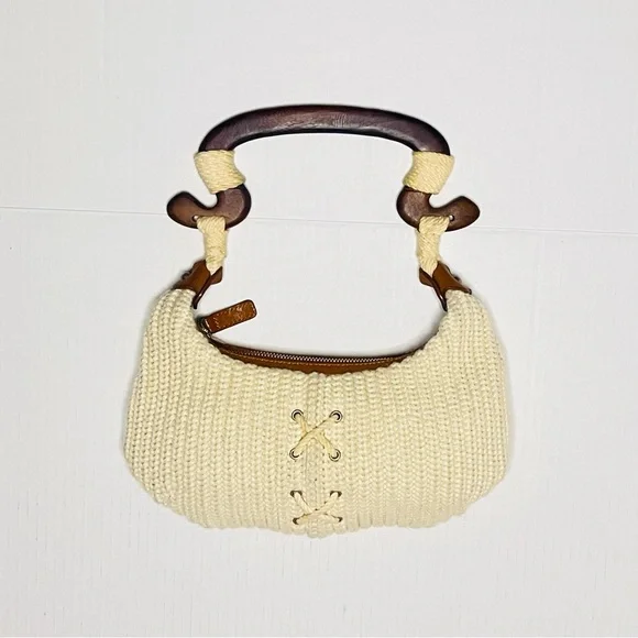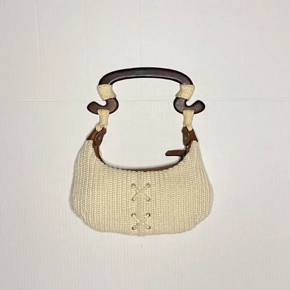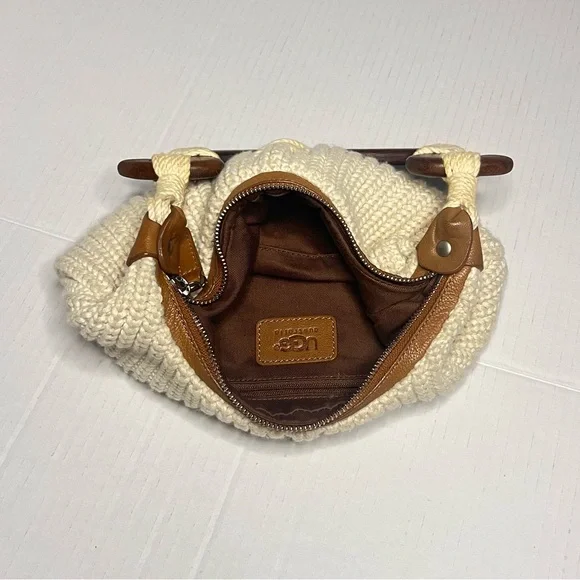 Vintage UGG Australia Crochet Knit Granny Bag, Grannycore Tote Bag. CONDITION: in VERY good, very clean, undamaged, gently used, or unisex, preowned condition. No defects. No flaws. tags: women’s classic Y2K style handbags, micro bags, mini crochet knit UGG bag, UGG crochet bag, UGG crochet tote bag small, small handbags for women, layered looks, layered neutrals, organic modern fashion, modern organic bags, granny chic handbags, light beige tote bag, cream crochet & wood handle bags, wood handle tote bags, mixed media bags, small cream crochet knit bag, hobo chic handbags, women’s purse, crochet knit purse, boho chic bag, bohemian handbags, cottagecore bag, small knit wood handle UGG bag, vintage UGG Australia bags, gypsy, hippie, snowbunny, granny square bags, coastal cowgirl bag, coastal grandma bags, women’s UGG bags, UGG totes