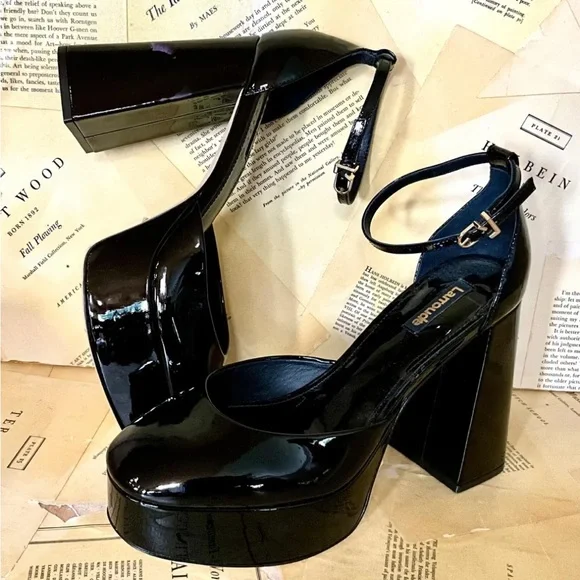 Anthropologie Larroude Ari Maryjane Pump Platform Black Patent LeatherNew Without Box*Size:10Retail Price $ 350.002" platform*5.25" heel
