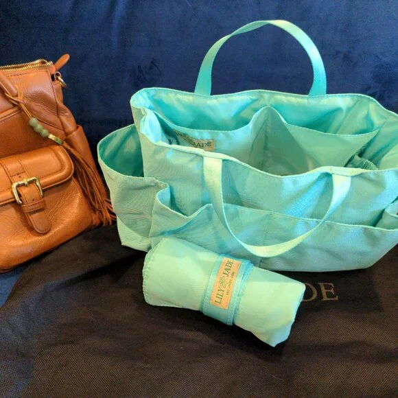 Beautiful camel leather with mint interior.No marks or stains.Includes the organizer, diaper pad, dust bag, and strap.