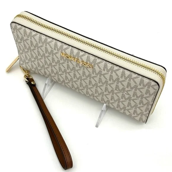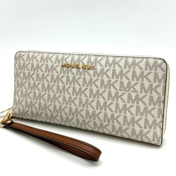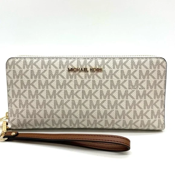 Michael Kors Large Continental Wallet Wristlet Vanilla/Brown