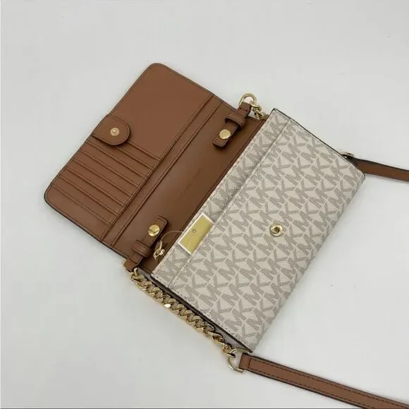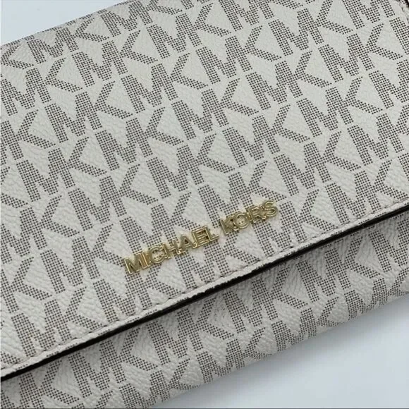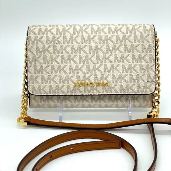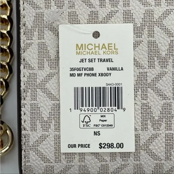 Brand New with TagMICHAEL KORS MEDIUM MULTIFUNCTIONPHONE XBODYBrand new authentic with tagsMichael kors jet set travel MD multifunctionPhone CrossbodyGold tone logo and hardwareColor: Vanilla8 credit card slotsSaffiano leatherExterior back open pocket with snap button closureApprx. Dimensions 6.75"W × 4.5"H × 1.5" D