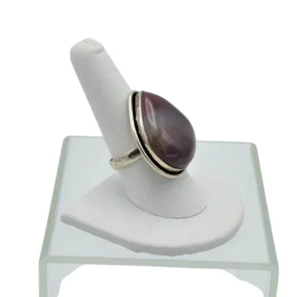 Vintage Sterling Silver & Hyacinth Jasper Ring Teardrop Purple