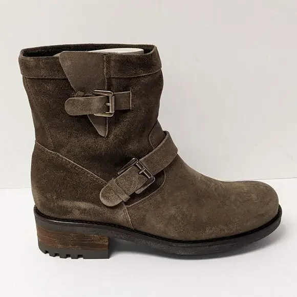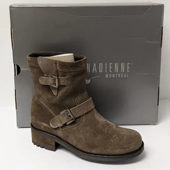 La Canadienne Charlotte Moto boots for women in new condition. Ships in the original shoe box.- Suede leather upper- Memory foam footed- Decorative buckles- Retails for $498.00