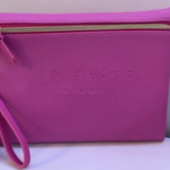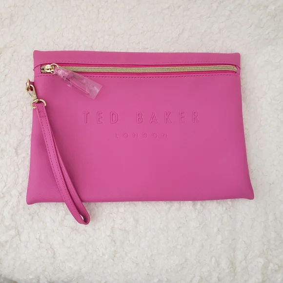 New Without TagNever Used Still Has Plastic On Zipper TED BAKER London Bright Pink Wristlet ClutchWristlet Clutch, with one Wrist StrapColor - Bright PinkGold Zipper Closure