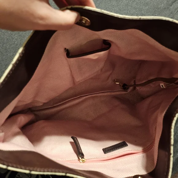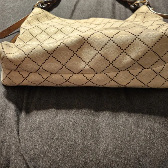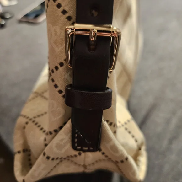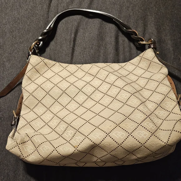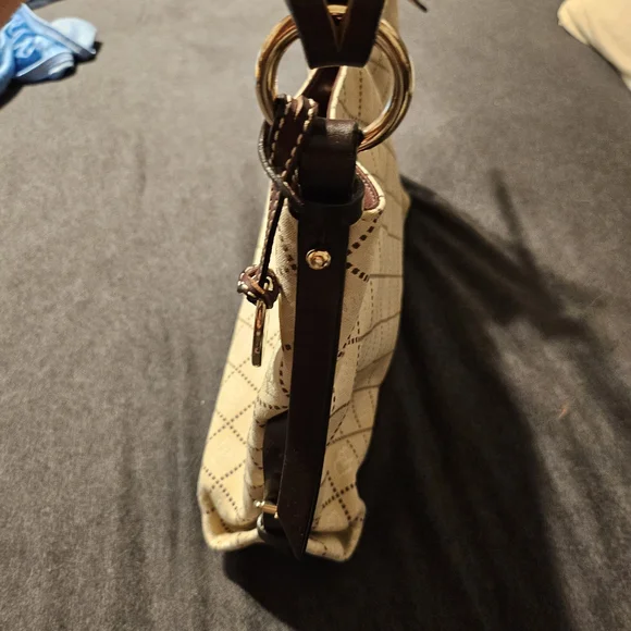 Dooney & Bourke Cream and Brown Shoulder Bag with Quilted Pattern
