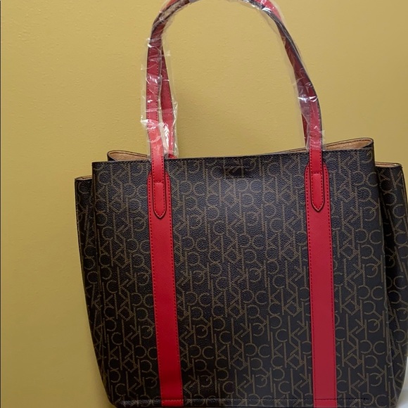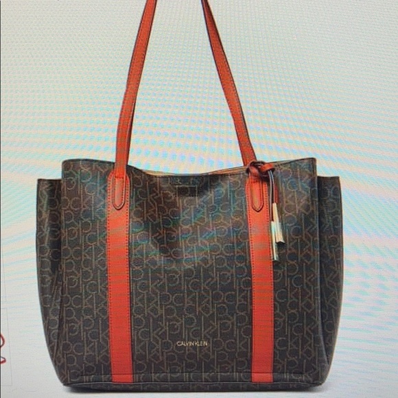 A stylish sleek tote embossed with brand detailing perfect for everyday styleDual shoulder strapsOpen topExterior features sleek brand printed constructionsInterior unlined, media...