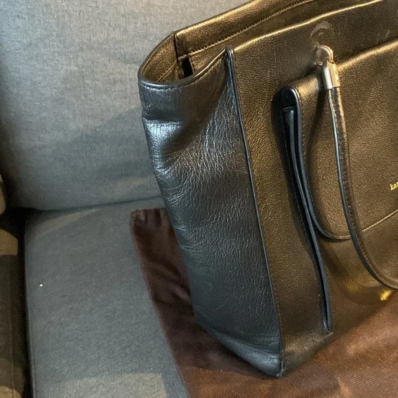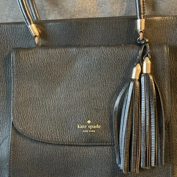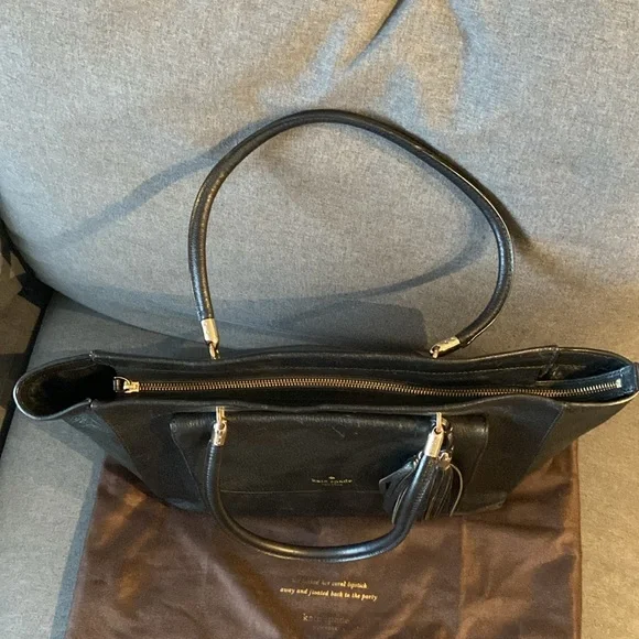 Kate Spade Leather Laptop PurseZipper top, pocket inside and outside of bagClean on insidePurse was bent in storage - in picsVery light scuffing - in pics Comes with large duster...