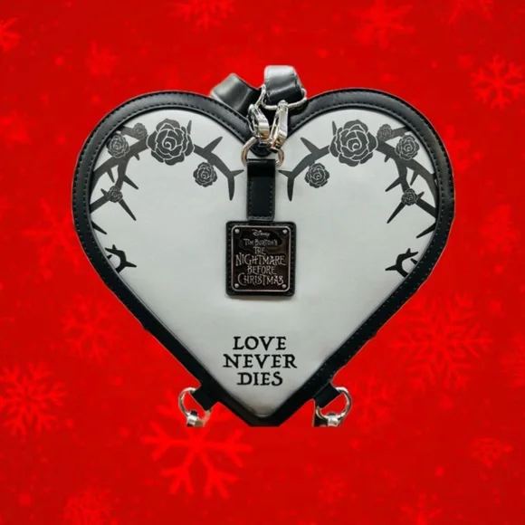 Loungefly Nightmare Before Christmas"Love Never Dies" Convertible Mini BackpackBrand New - With Tags Adjustable straps Zip Around Closure Dimensions 9H x 10W x 4D